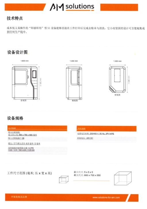 成本低又易操作的“及插即用”型S1设备能够直接在工件打印后完成去粉末与清洗,它小而坚固的设计可方便地集成到任何生产线中。