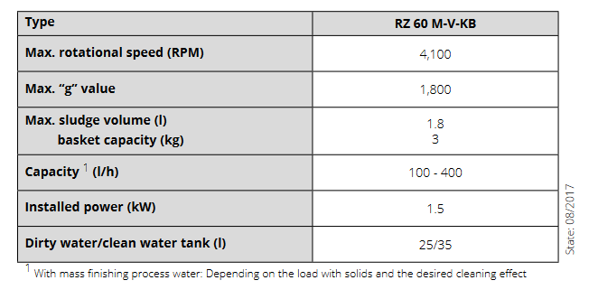 The semi-automatic 2-phase centrifuge is ideal for applications with low solid particle loads. They can be employed for mass finishing as well as for all kinds of other industrial liquids.